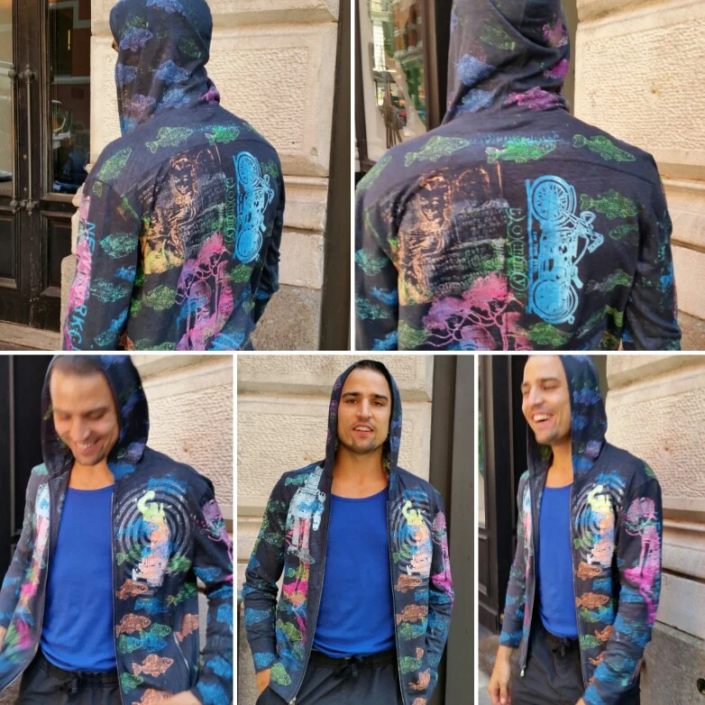 Special order, ONEofaKINd, Wearable art • TommyTees NYC • John Varvados hand printed sweatshirt.